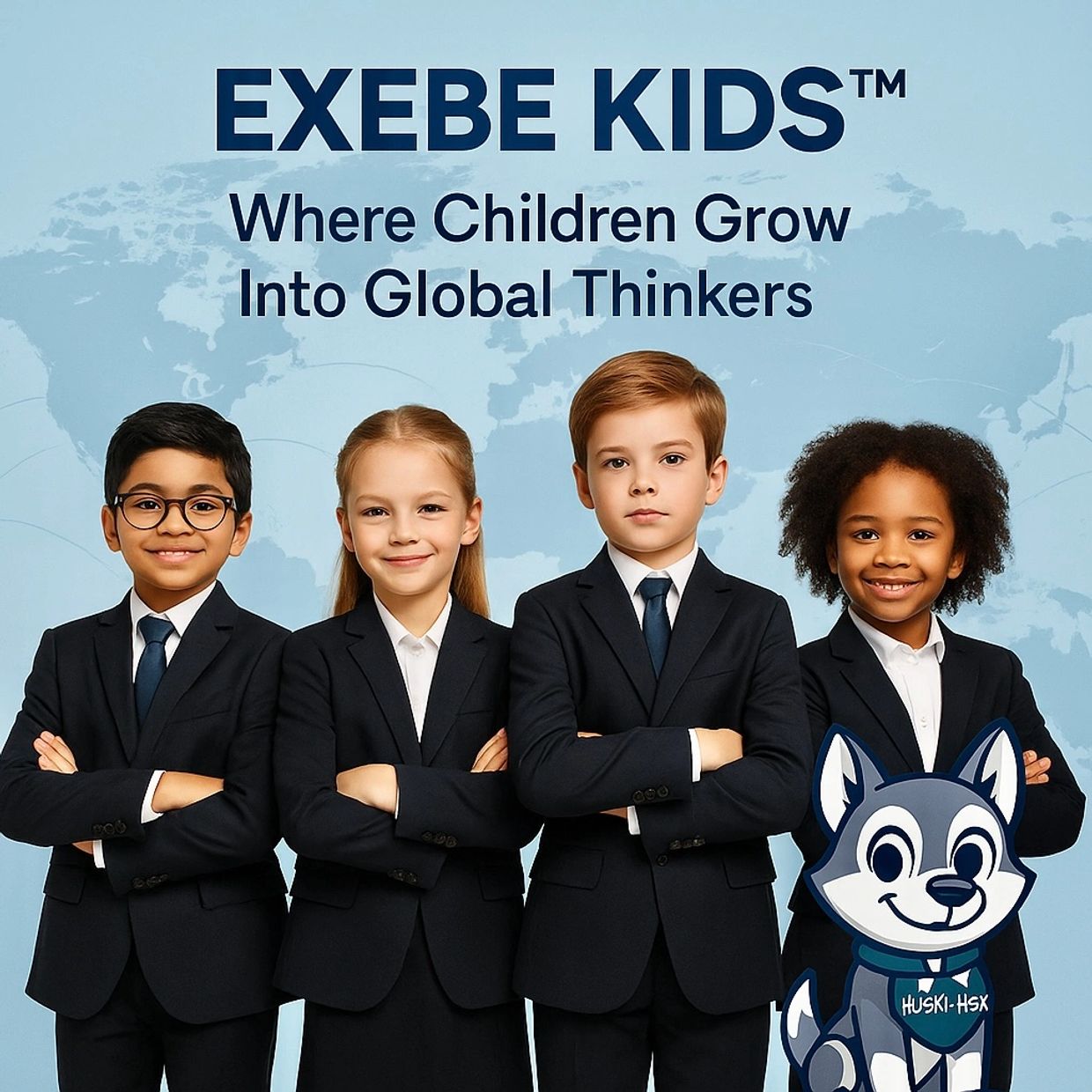 EXEBE Kids™ develops early leadership, innovation, communication and global thinking for children through the Huski-Msk™ methodology.